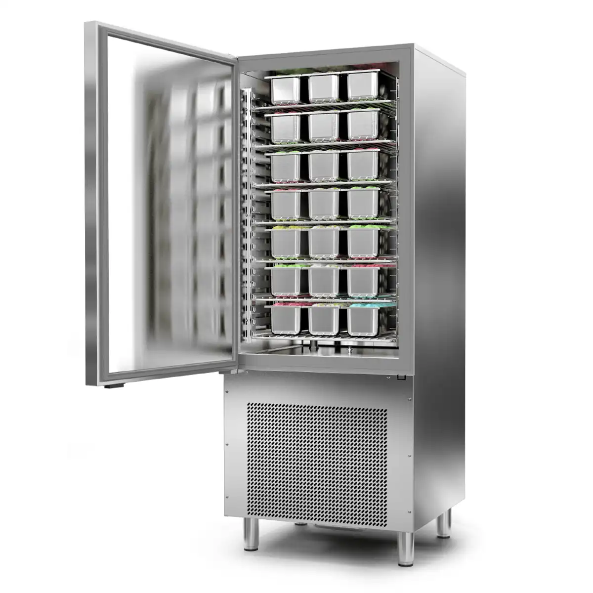 ✔ Potencia industrial y precisión italiana: hasta 40 kg de abatimiento (+3°C) o 15 kg de ultracongelado (-40°C) en un solo ciclo.
