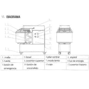 La amasadora en espiral Kuma A10 cuenta con un bowl con capacidad de 10 litros en el cual se pueden colocar hasta 4 kilogramos de harina resultando en 6 kilogramos de masa terminada por tanda. Opere con tranquilidad gracias al corte de seguridad automático colocado en la rejilla que cubre al recipiente, su función; es apagar el equipo apenas esta se abra. Su bowl y gancho amasador rotan simultáneamente para efectuar el mejor resultado posible esforzando menos al motor del espiral.
