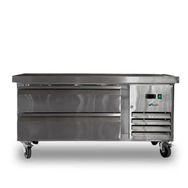 - Tapa Superior Heavy-Duty Aislada: Soporta cientos de kilos de equipamiento comercial de sobremesa. Su diseño especializado disipa el calor radiante de los equipos de cocción, protegiendo el compresor y asegurando que los alimentos en los cajones se mantengan a salvo.