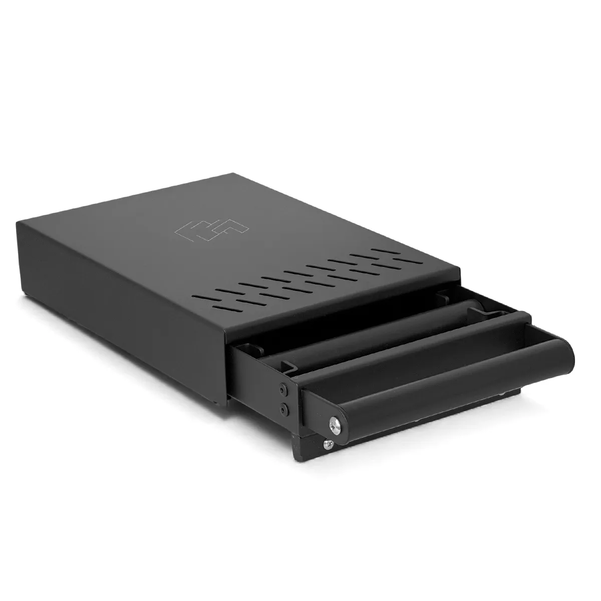 • Base «Under-Grinder»: Su estructura reforzada de acero inoxidable soporta perfectamente el peso de su molinillo. Al colocar el molino encima del cajón, libera espacio valioso en la mesada y centraliza el flujo de trabajo en una sola estación vertical.