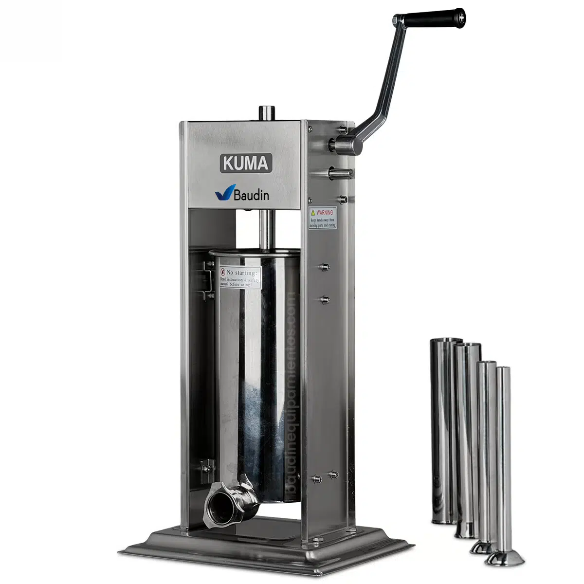 En Baudin, bancamos al que se la juega por hacer su propio producto. La Embutidora Manual Kuma TV-5LA es la máquina perfecta para eso. La elegimos porque es un fierro bien hecho: toda de acero, fácil de limpiar y el sistema de dos velocidades es un golazo que te cambia el laburo. Es la compra de cabeza para la carnicería que quiere empezar a vender su chorizo casero o para el restaurante que quiere poner en la parrilla un producto con su propio sello. Es una inversión que se paga sola con la calidad y la personalidad que le das a tu negocio.