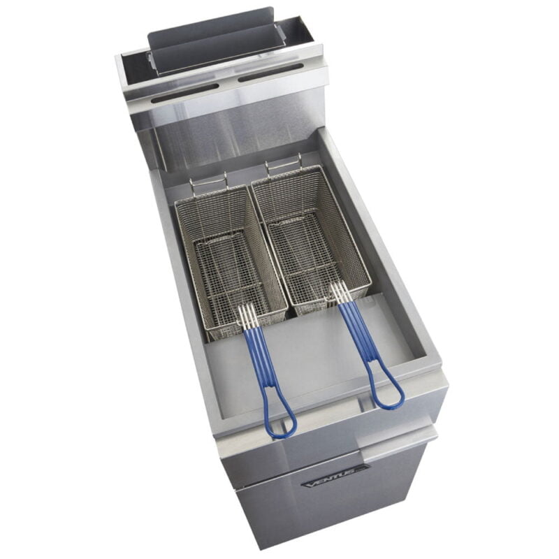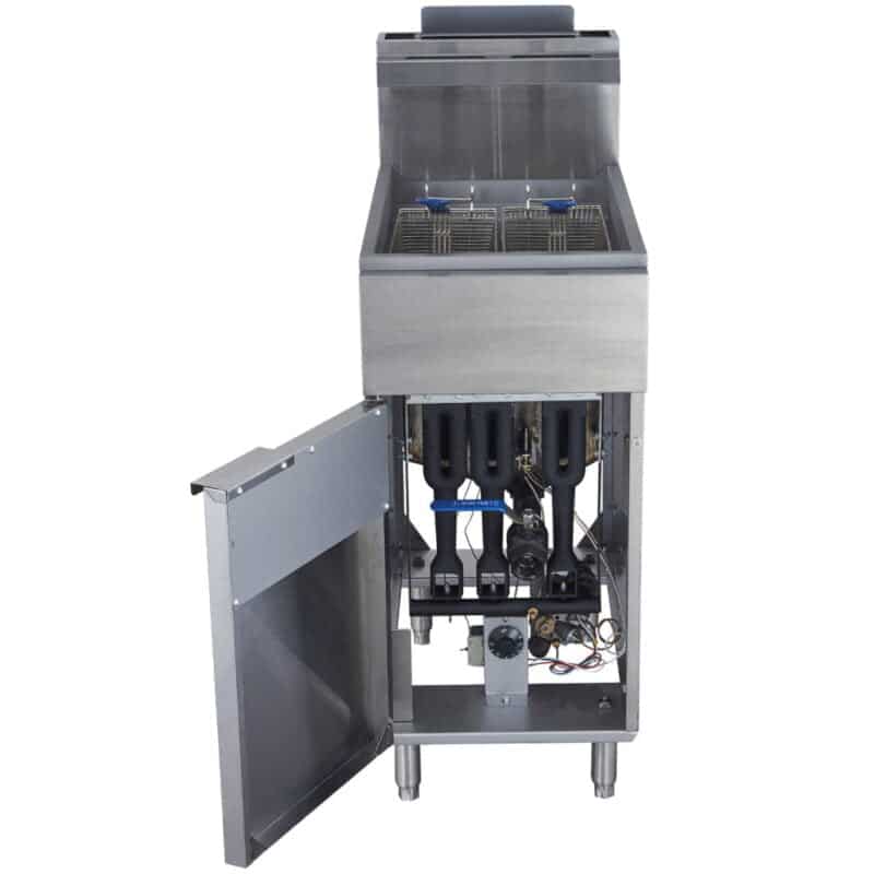Con sus dos canastillos, es posible cocinar diferentes alimentos al mismo tiempo, lo que es ideal para aquellos que ofrecen variedad en su menú. Además, su potencia de 90,000 BTU hace que este freidor sea muy rápido y eficiente, lo que permite cocinar grandes cantidades de alimentos en poco tiempo y satisfacer la demanda de los clientes.