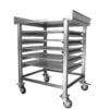 Los Gavillares son carros, en los que se colocan varios estantes para poder transportar de una sola vez el mayor número posible de bandejas , en este modelo G-usted puede transportar hasta 5 bandejas en total y un horno.  Estos estantes son del tamaño estándar para bandejas  GN 1/1 equivalente a 60 x 40 cm.