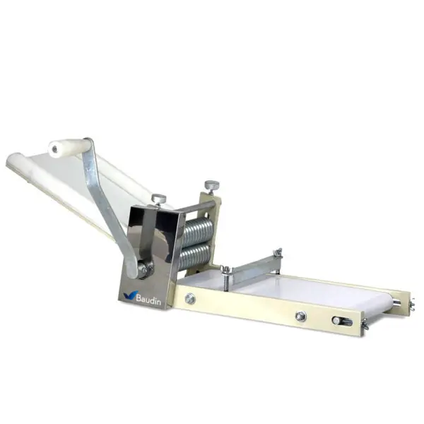 Sabés que ofrecer un grisín casero, crocante y sabroso eleva la categoría de tu panera o picada. La Grisinera Manual Profesional Baudin GBM-18 es la herramienta diseñada para que puedas hacerlo, pero con la velocidad y la consistencia de una producción en serie. Olvídate del cuchillo y la regla. Esta máquina ingeniosa te permite estirar la masa sobre su banda transportadora y, con una simple pasada, cortar 18 tiras de grisines de 6mm absolutamente uniformes. Es la fusión perfecta entre el control artesanal y la eficiencia de una máquina.