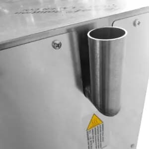También el mismo cuenta con un botón de seguridad al abrir la puerta que corta el funcionamiento de la turbina al abrir la puerta para proteger al operador del calor que sopla la turbina.