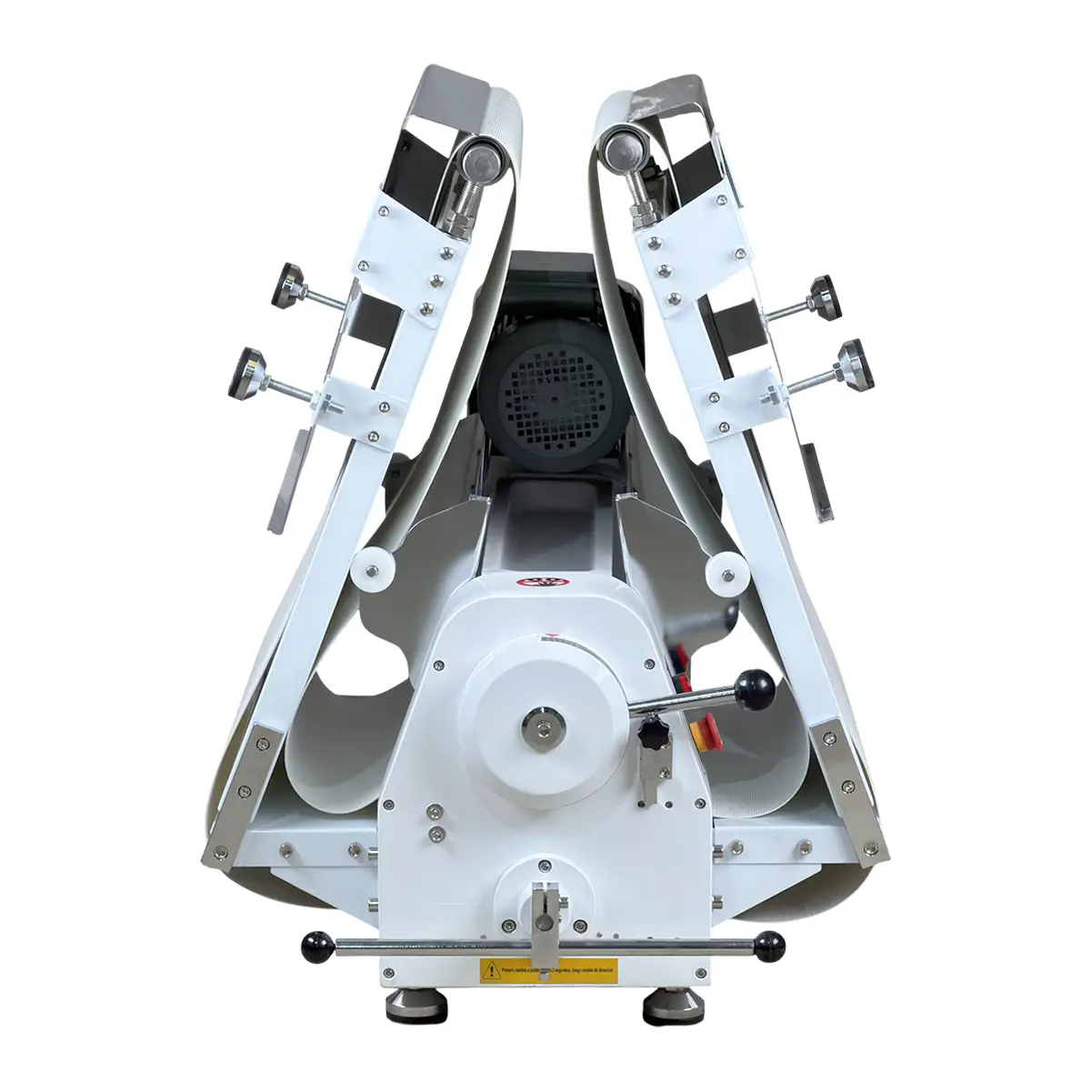 Las cintas son de material sintético lavable. Se pueden limpiar con un paño húmedo y detergente neutro. Los rodillos cuentan con raspadores que eliminan el exceso de harina y masa automáticamente durante el uso.