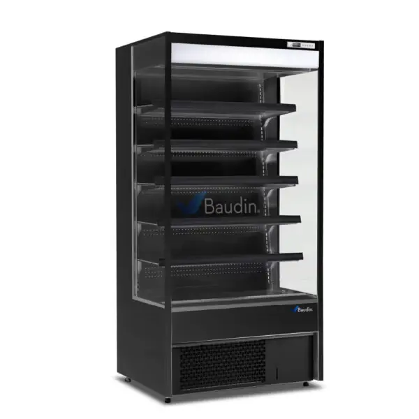 A diferencia de otros murales, este posee una cortina que se dispensa desde la parte superior frontal, para mantener idóneas las temperaturas en horarios que el local permanezca cerrado.