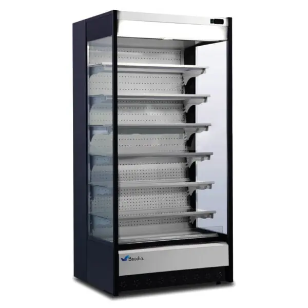 Con dimensiones de 122 x 74 x 200 cm, este mural refrigerado cuenta con 5 estantes de 37 x 122 cm para exhibir tus productos. La iluminación LED proporciona una iluminación brillante y uniforme para que tus productos se vean lo mejor posible.