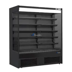 A diferencia de otros murales, este posee una cortina que se dispensa desde la parte superior frontal, para mantener idóneas las temperaturas en horarios que el local permanezca cerrado.