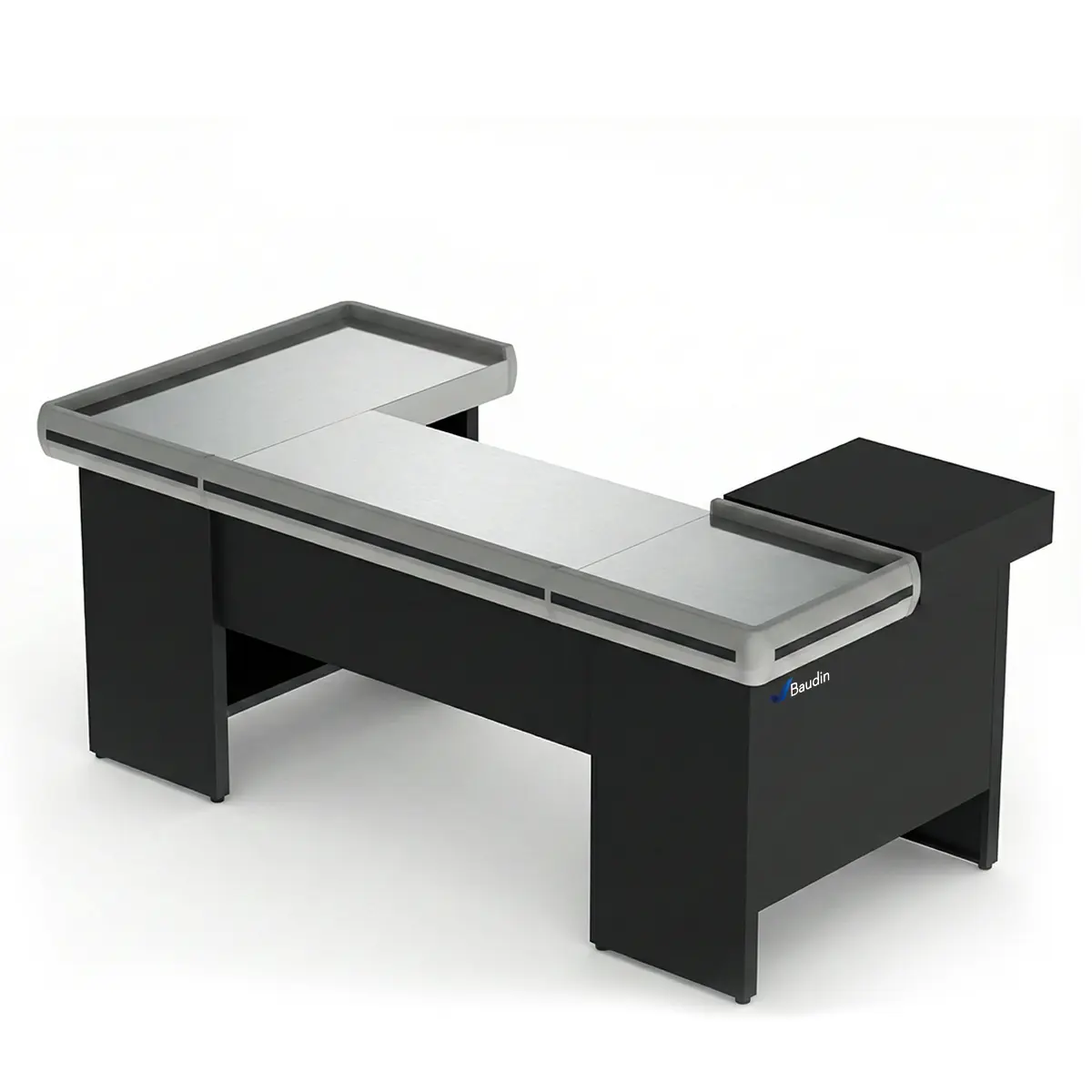 En superficies comerciales de alto volumen, el espacio en el mostrador de cobro es directamente proporcional a la comodidad del cliente. Un mostrador pequeño se satura rápido, generando estrés y posibles caídas de productos. Necesitas una estructura que soporte carros llenos y ofrezca una superficie de trabajo amplia y resistente.