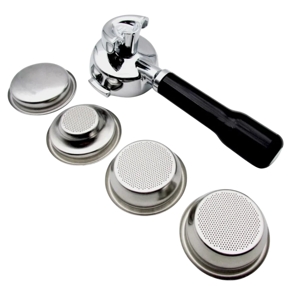 Este portafiltros incluye 3 filtros de acero inoxidable como el de 1 dosis (7 - 9 g), ideal para preparar espressos consistentes y de alta calidad. Tambien incluye un filtro ciego ideal para la limpieza del grupo Lelit57 y una canasta para sobre de cafe.