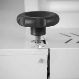 Esta sobadora cuenta con un botón E/S que permite encender y apagar el equipo con total seguridad, también; cuenta con dos reguladores de aperturas en la parte superior que permiten mayor control para el operador en todo momento.