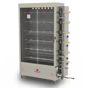 - Alta Capacidad y Eficiencia: Con espacio para 24 pollos, este spiedo es perfecto para negocios que necesitan maximizar la producción sin comprometer la calidad.