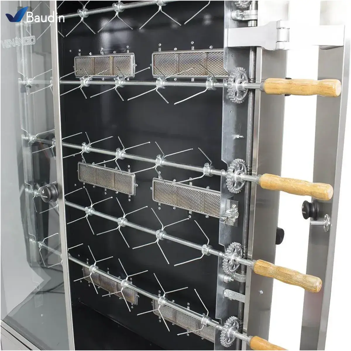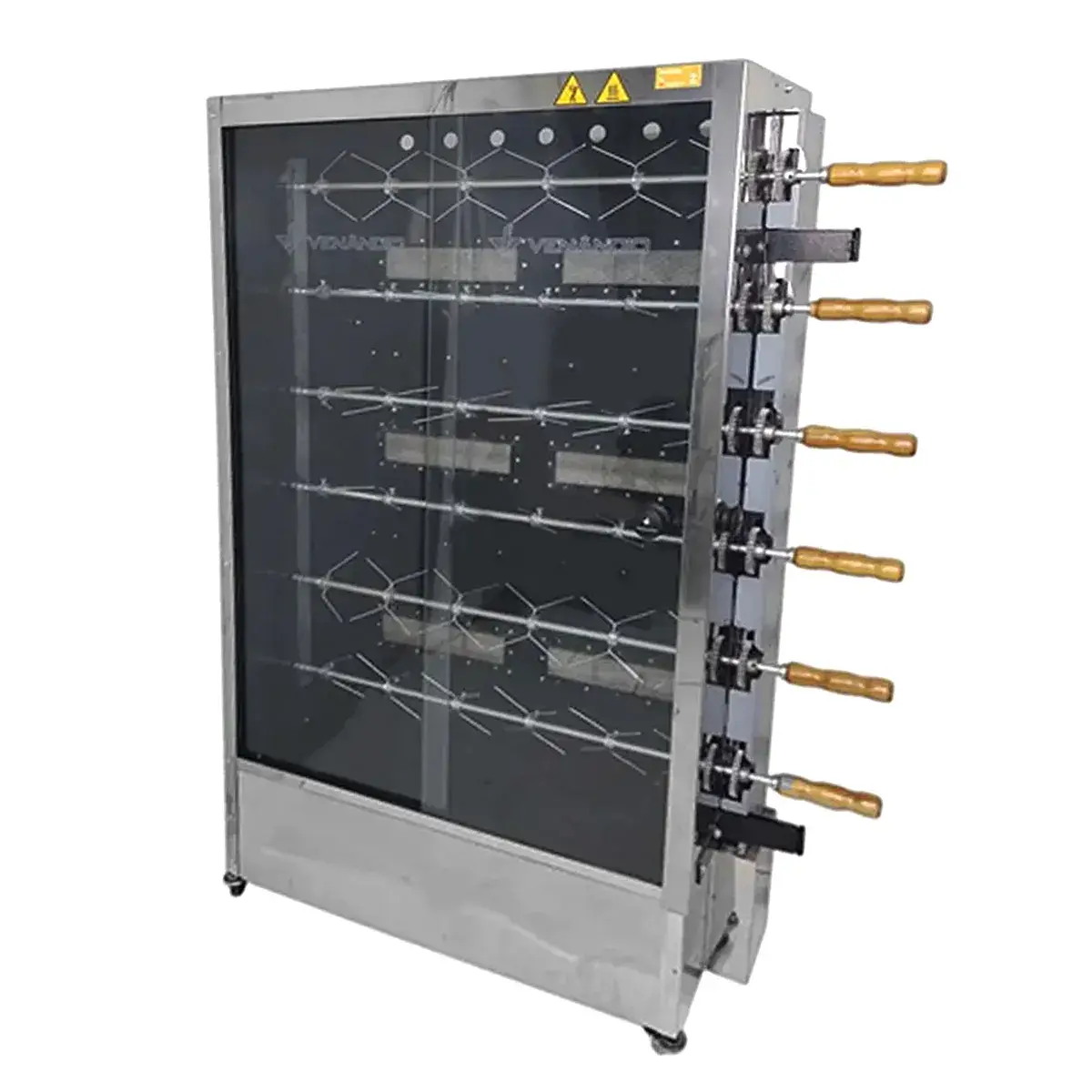 - Exhibición que Vende por Sí Sola: Sus amplios vidrios y la iluminación interna permiten una visualización perfecta del asado, convirtiendo el spiedo en un atractivo central de tu local. Ver los pollos dorándose lentamente es un poderoso imán para las ventas por impulso.