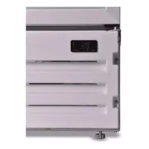 Este refrigerador cuenta con cuatro estantes ajustables, lo que te permite personalizar el espacio de almacenamiento según tus necesidades. También tiene un interruptor de puerta para ahorrar energía y un sistema de condensación forzada para mantener tus productos frescos y en perfectas condiciones.