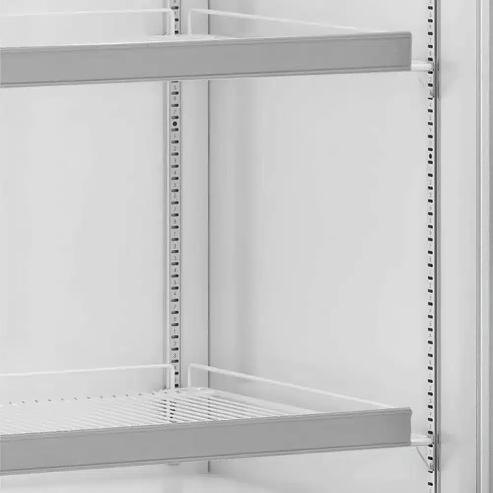 Prácticas Rejillas Regulables: Cuatro niveles ajustables e inclinables que se adaptan a diferentes tamaños de productos, optimizando el espacio interior.