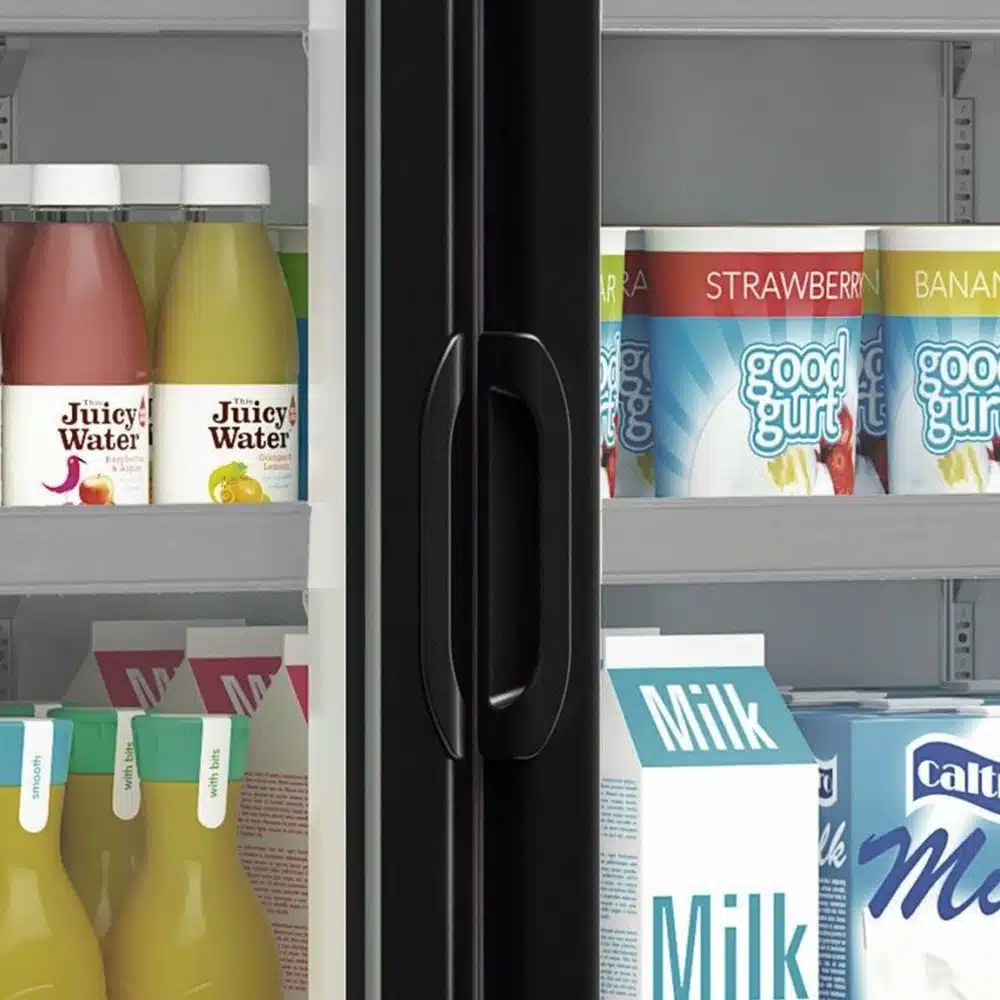 Puertas de Vidrio Doble Templado: Ofrecen durabilidad y eficiencia energética, permitiendo una visualización clara sin necesidad de abrir el refrigerador.