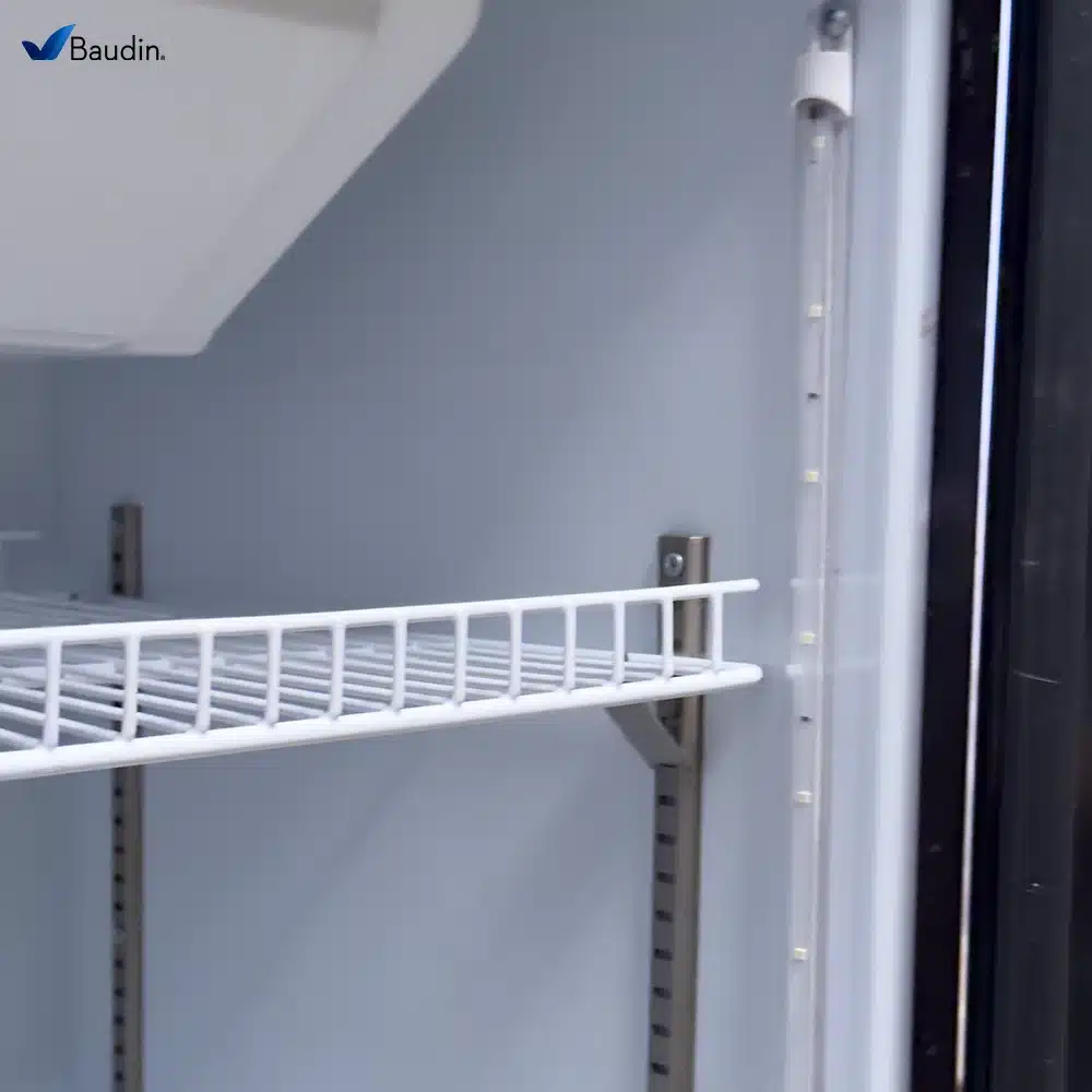 Iluminación LED interior: Dos tiras LED estratégicamente ubicadas resaltan la presentación de los productos sin generar calor.