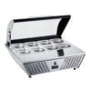 La Vitrina topinera 0.77 metros sobre mostrador refrigerada es ideal para Rotiserías, FoodTruck, Pizzerías y cualquier establecimiento gastronómico. Cuenta con 8 cubas donde usted podrá exponer todo tipo de ingredientes como ensaladas, frutas y aderezos conservando la frescura de los mismos ya que cuenta con control de temperatura digital que va de 2 a 12ºC. Su estructura moderna y exclusiva le aporta a su establecimiento diseño y calidad ya que está fabricada en su totalidad en Acero Inoxidable, sin quitarle demasiado espacio ya que se instala sobre el mostrador.