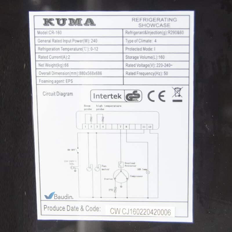 Vitrina sobre mostrador refrigerada 160 Litros Vidrio Recto | Kuma CR-160