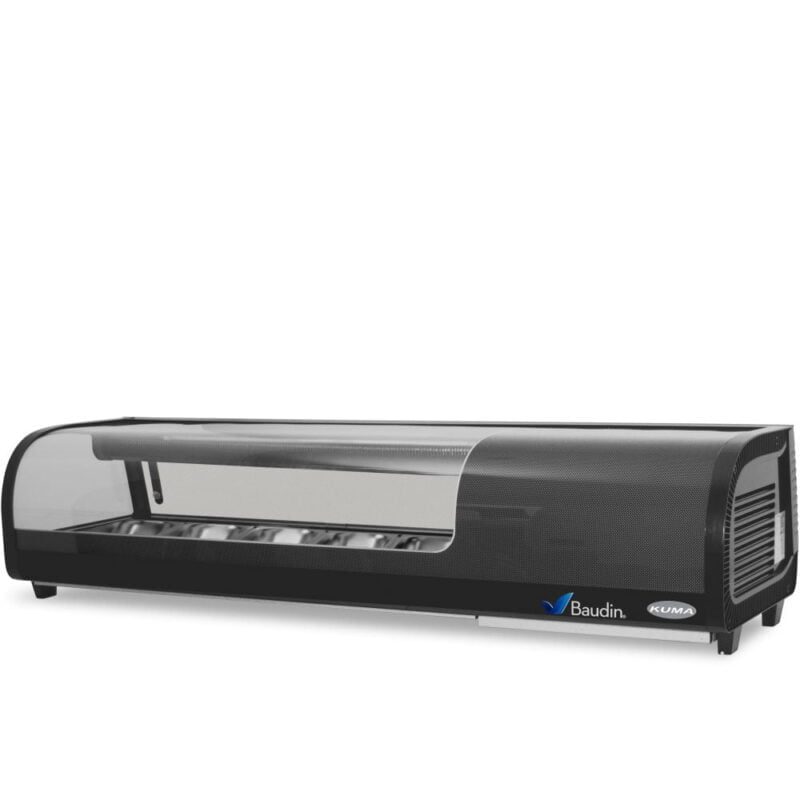 El pescado crudo exige una especial conservación y manejo de temperatura cubierto por el rango de trabajo de este exhibidor. Por eso, resulta fundamental adquirir una vitrina sobre mostrador para sushi de 5 cubas. Las vitrinas para sushi Kuma se colocan de cara al público y cuenta con 2 puertas de vidrio que permiten que el operario sepa que va a buscar antes de abrirla, por lo que lo hace de esta vitrina un equipo eficiente capaz de ahorrar espacio, optimizar el trabajo y ofrecer una excelente imagen al comercio.