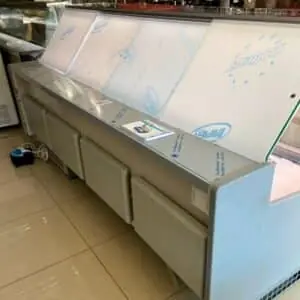 La encuentra con un frente de exhibición en 2.5 metros muy elegante, para exhibir una variedad de productos alimenticios, lácteos, carnes, fiambres y mucho mas, esta hermosa Vitrina refrigerada de vidrio recto con bodega está equipada con vidrio cristal plano securizado, con un rango de temperatura de 2 a +6°C.