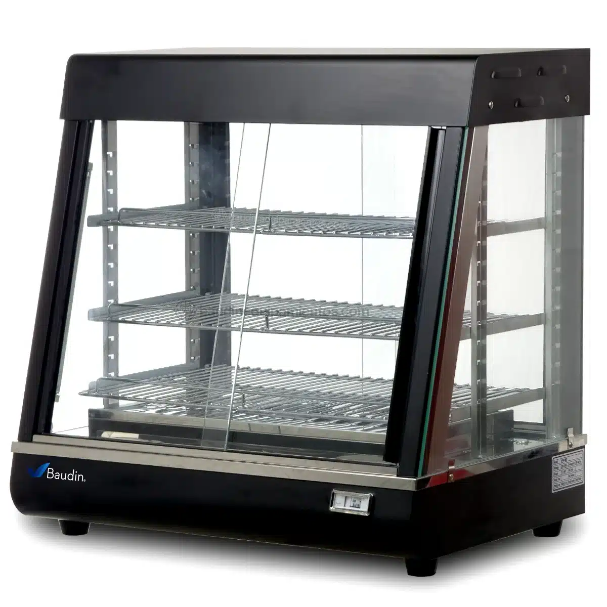 - Preparación y Encendido: Conecta la vitrina a una fuente de energía adecuada (220-240 V) y enciende el sistema de calentamiento para alcanzar la temperatura deseada.